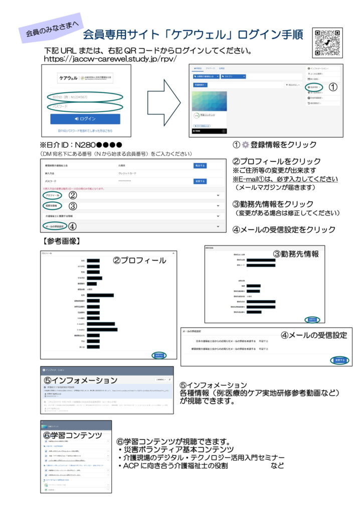 会員専用サイト「ケアウェル」ログイン手順は こちら