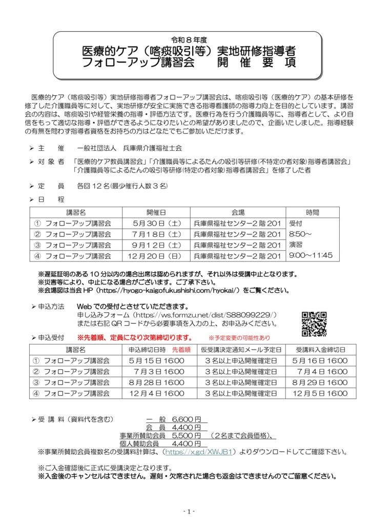 医療的ケア(喀痰吸引等)実地研修指導者フォローアップ講習会を開催します